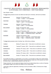 Christmas 2025 training times